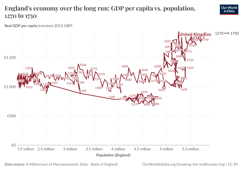 Max Roser (2020) - “Breaking out of the Malthusian trap: How pandemics allow us to understand why our ancestors were stuck in poverty” Published online at OurWorldinData.org. Retrieved from: 'https://sophia-test-2.owid.pages.dev/breaking-the-malthusian-trap' [Online Resource]BibTeX citation