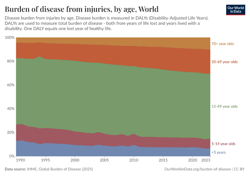 It’s important to note that this chart shows the relative share of DALYs from each category.