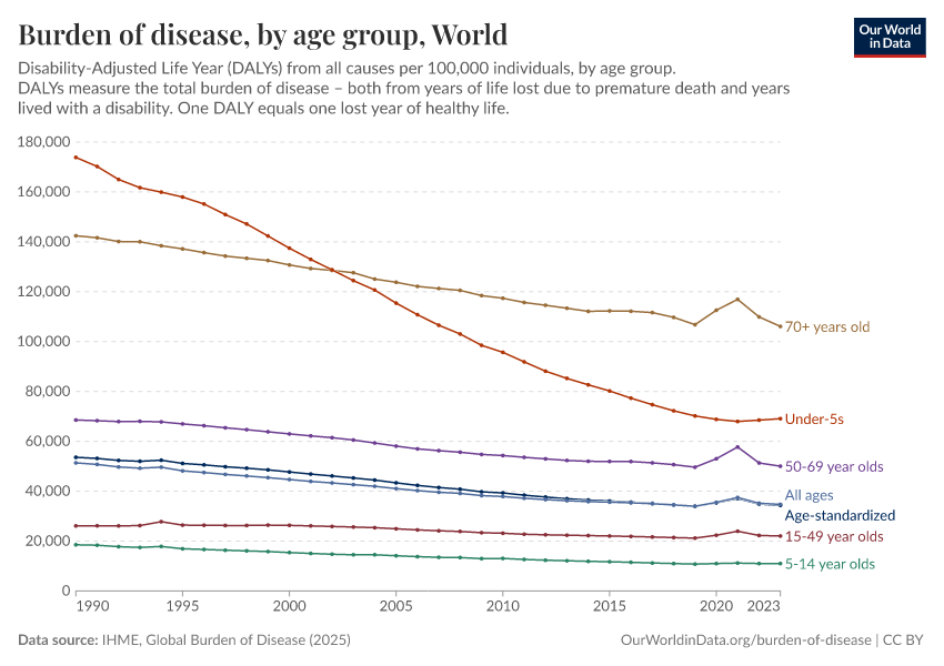 At a global level, collective rates across all ages have steadily declined. This shows that global health has improved considerably since then.