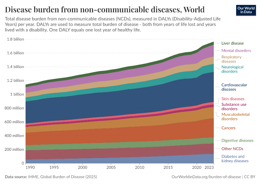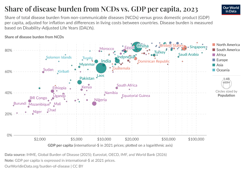 The visualizations here focus on the disease burden resulting from non-communicable diseases (NCDs).