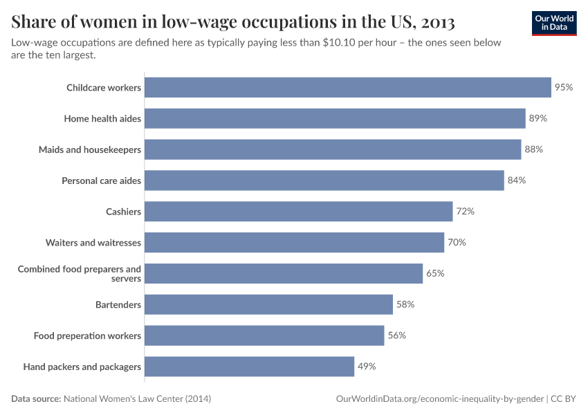 Representation of women in low-paying jobs