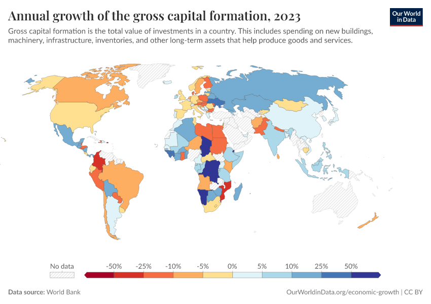 “Data Page: Annual growth of the gross capital formation”. Our World in Data (2026). Data adapted from World Bank. Retrieved from https://sophia-test-2.owid.pages.dev/grapher/annual-growth-of-the-gross-capital-formation [online resource]How to cite this data
