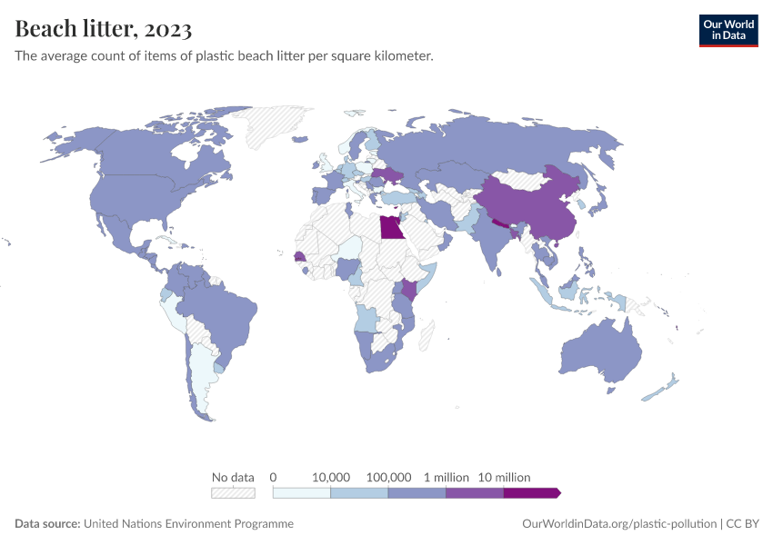 “Data Page: Beach litter”. Our World in Data (2026). Data adapted from United Nations Environment Programme. Retrieved from https://sophia-test-2.owid.pages.dev/grapher/beach-litter [online resource]How to cite this data