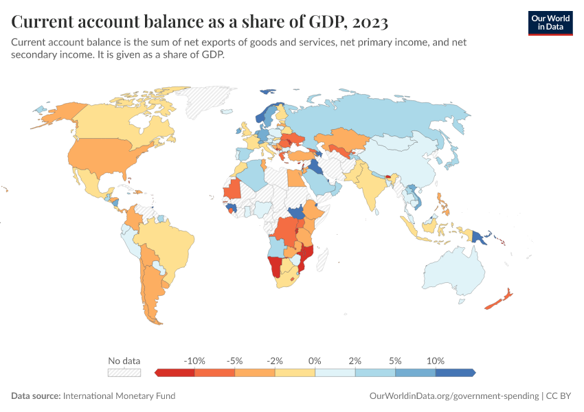 “Data Page: Current account balance as a share of GDP”. Our World in Data (2026). Data adapted from International Monetary Fund. Retrieved from https://sophia-test-2.owid.pages.dev/grapher/current-account-balance-as-a-proportion-of-gdp [online resource]How to cite this data