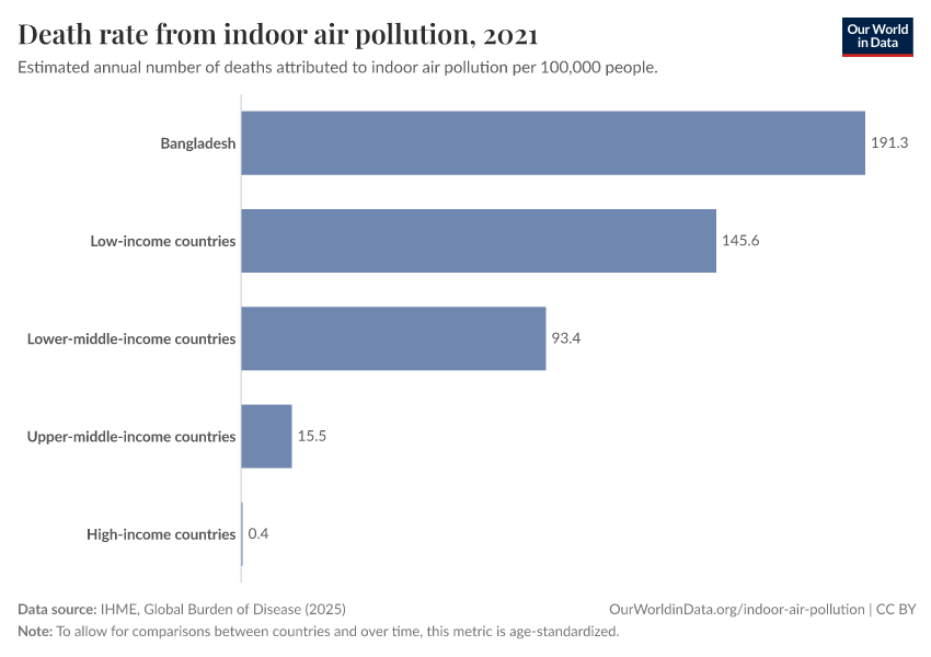 Death rate from indoor air pollution