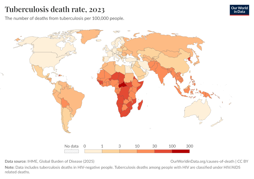 “Data Page: Tuberculosis death rate”, part of the following publication: Esteban Ortiz-Ospina and Max Roser (2016) - “Global Health”. Data adapted from IHME, Global Burden of Disease. Retrieved from https://sophia-test-2.owid.pages.dev/grapher/death-rate-from-tuberculosis-gbd [online resource]How to cite this data