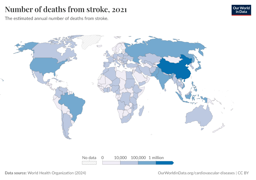 World Health Organization (2024) – with major processing by Our World in Data. “Number of deaths from stroke” [dataset]. World Health Organization, “Global Health Estimates” [original data]. Retrieved January 6, 2026 from https://sophia-test-2.owid.pages.dev/grapher/deaths-from-strokes-ghe