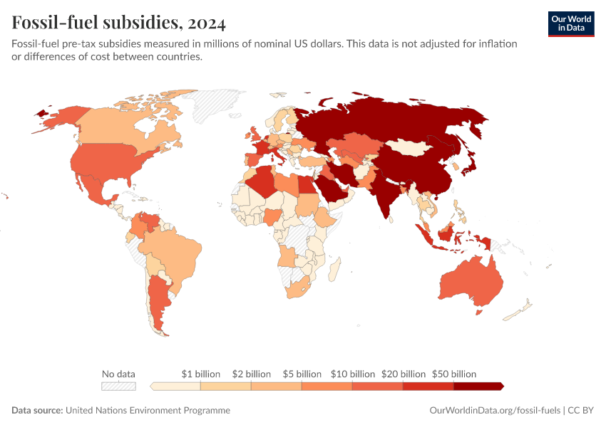 United Nations Environment Programme – processed by Our World in Data. “Fossil-fuel subsidies” [dataset]. United Nations Environment Programme, “Data from multiple sources” [original data]. Retrieved January 6, 2026 from https://sophia-test-2.owid.pages.dev/grapher/fossil-fuel-subsidies