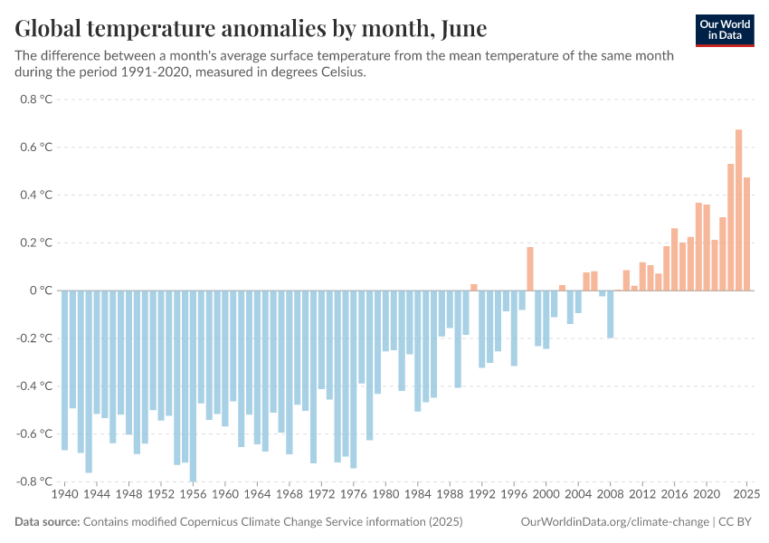 Contains modified Copernicus Climate Change Service information (2025) – with major processing by Our World in Data. “Global temperature anomalies by month” [dataset]. Contains modified Copernicus Climate Change Service information, “ERA5 monthly averaged data on single levels from 1940 to present 2” [original data]. Retrieved January 6, 2026 from https://sophia-test-2.owid.pages.dev/grapher/global-temperature-anomalies-by-month