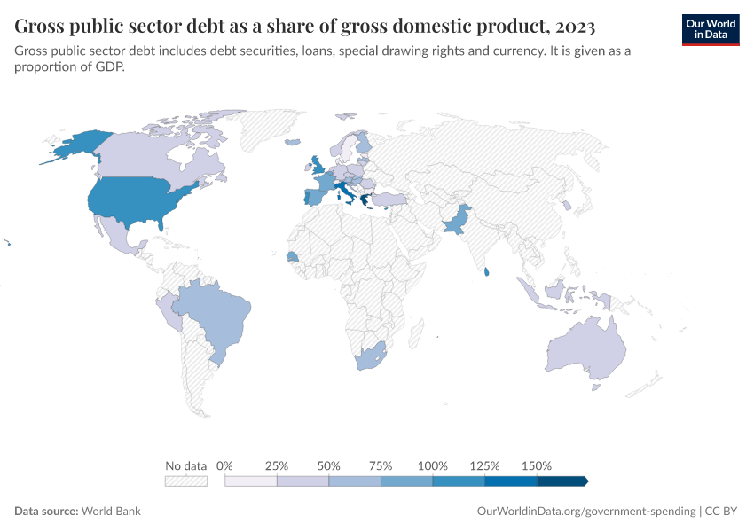 “Data Page: Gross public sector debt as a share of gross domestic product”. Our World in Data (2026). Data adapted from World Bank. Retrieved from https://sophia-test-2.owid.pages.dev/grapher/gross-public-sector-debt-as-a-proportion-of-gdp [online resource]How to cite this data