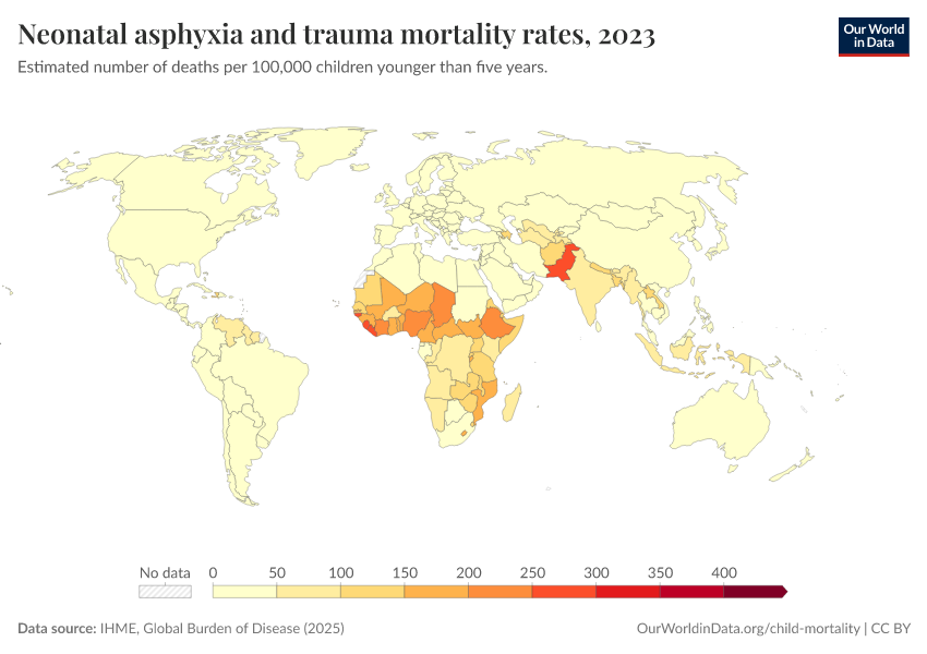 IHME, Global Burden of Disease (2024) – with minor processing by Our World in Data. “Neonatal asphyxia and trauma mortality rates” [dataset]. IHME, Global Burden of Disease, “Global Burden of Disease - Deaths and DALYs” [original data]. Retrieved January 6, 2026 from https://sophia-test-2.owid.pages.dev/grapher/mortality-neonatal-asphyxia-and-trauma