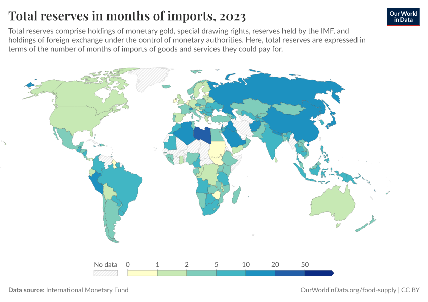 “Data Page: Total reserves in months of imports”. Our World in Data (2026). Data adapted from International Monetary Fund. Retrieved from https://sophia-test-2.owid.pages.dev/grapher/total-reserves-in-months-of-imports [online resource]How to cite this data