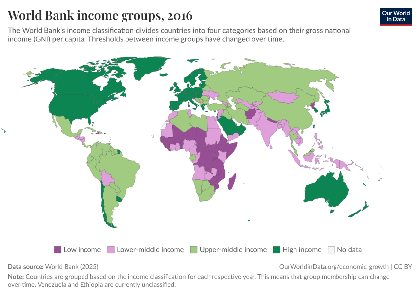 World Bank (2025) – with major processing by Our World in Data. “World Bank income groups” [dataset]. World Bank, “Income Classifications” [original data]. Retrieved January 6, 2026 from https://sophia-test-2.owid.pages.dev/grapher/world-bank-income-groups
