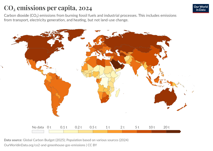 Hannah Ritchie (2019) - “Where in the world do people emit the most CO2?” Published online at OurWorldinData.org. Retrieved from: 'https://sophia-test-2.owid.pages.dev/per-capita-co2' [Online Resource]BibTeX citation