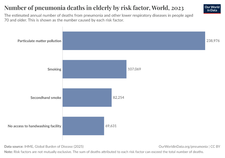 Air pollution is also a major risk factor for pneumonia, as you can see in the chart.