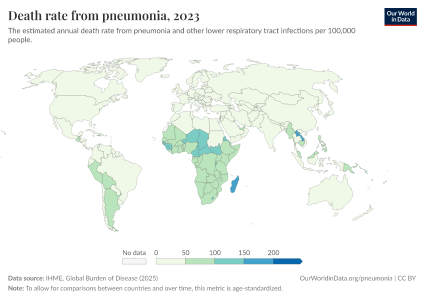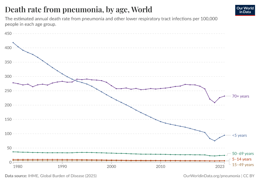 Bernadeta Dadonaite and Max Roser (2019) - “Pneumonia” Published online at OurWorldinData.org. Retrieved from: 'https://sophia-test-2.owid.pages.dev/pneumonia' [Online Resource]BibTeX citation