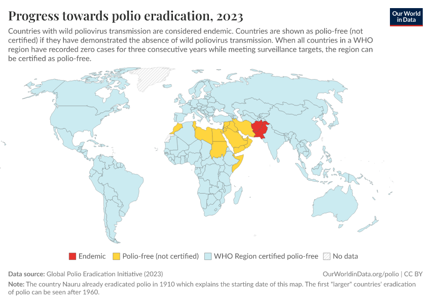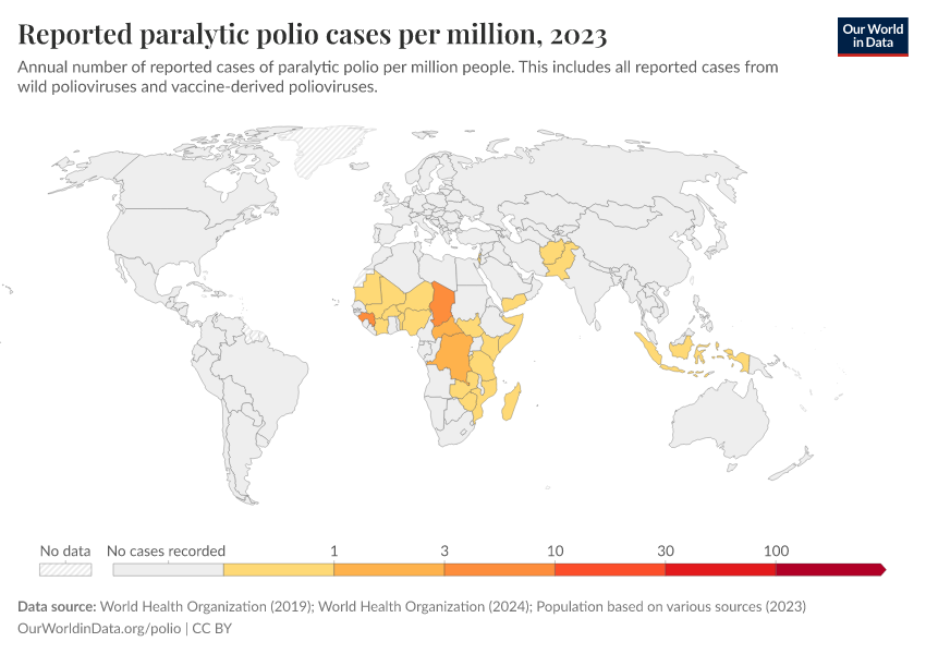 Saloni Dattani, Fiona Spooner, Sophie Ochmann, and Max Roser (2022) - “Polio” Published online at OurWorldinData.org. Retrieved from: 'https://sophia-test-2.owid.pages.dev/polio' [Online Resource]BibTeX citation