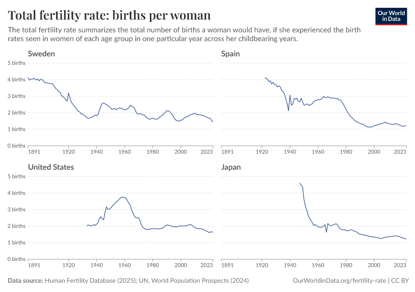 Saloni Dattani and Lucas Rodés-Guirao (2025) - “Why the total fertility rate doesn’t necessarily tell us the number of births women eventually have” Published online at OurWorldinData.org. Retrieved from: 'https://sophia-test-2.owid.pages.dev/total-fertility-rate-births-per-woman' [Online Resource]BibTeX citation